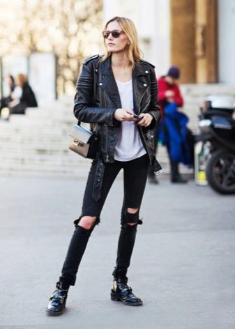 Recently, a fashion for men's style has appeared. Moreover, this is manifested in everything - in clothes, shoes and even accessories. Suede and lacquered models, decorated with prints or studs, resemble a biker style. Coarse shoes decorated with rhinestones look especially original.