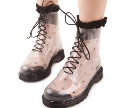 The original solution was transparent shoes. This idea first appeared in summer collections. Today it can be observed in inter-season models. In this case, the boots are insulated with fur from the inside. It looks stylish and non-standard.