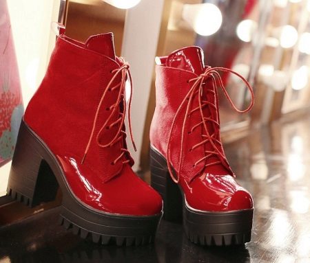 Winter combined models from fur and leather with laces look spectacular. They look amazing with dresses and skirts of any length. Inflated lace-up shoes accentuate the slimness of the legs. At the same time, designers recommend looking at bright colors, forgetting about black.