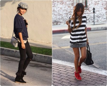 Despite the fact that winter sports shoes came into use a few seasons ago, it does not lose its popularity. Fashionistas do not get tired of buying "sneakers" and "arrowroots." The most popular models of colored leather. They will suit both jeans and skirts. Their color can be any. With the help of "sneakers" it is easy to play with images, creating new and original bows. This is another advantage. Sports shoes can be made of various materials. This makes her even more attractive.