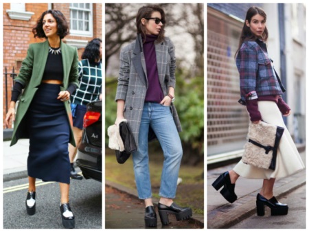 At first glance it seems to many that these shoes are bulky and uncomfortable. But trying on these shoes, you immediately change your impression of them. Moreover, experts argue that just such models make the figure more fragile and sophisticated. At the same time, they pay attention to the fact that these massive shoes are not suitable for too thin girls, as they will only focus on excessive thinness. Stylists advise wearing tractor-soled shoes with tight tights and voluminous sweaters. But flared pants with this shoe look ridiculous.