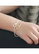 Such accessories are suitable for young, lovely creatures. They can be performed in a variety of variations. It does not matter at all whether it will be a strict classic or postmodernism: the infinity sign will not only decorate the product, but also create a halo of mystery.