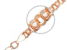 Initially, a rather rough weaving “cardinal” (also called “Bismarck”) was invented for chains that weighed more than a hundred grams. For many, Bismarck is associated with men's jewelry, but on the woman’s neck or arm this weaving looks quite aesthetically pleasing. Jewelry made using this technique is famous for its strength and durability.