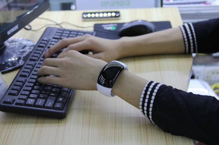 When the smart gadget is put on hand, it resembles an ordinary wide plastic bracelet with a simple design.