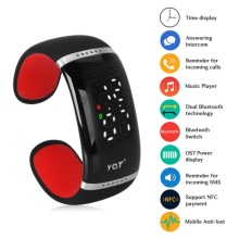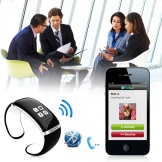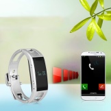 Phone bracelets are equipped with OLED displays that display data from a smartphone. When an incoming call arrives on a mobile phone, the “smart” bracelet emits an audio or vibration signal and simultaneously displays information from the phone book. Use the side buttons to reject or accept the call. Built-in speaker and microphone will allow you to make a conversation without taking the gadget out of your pocket or bag.