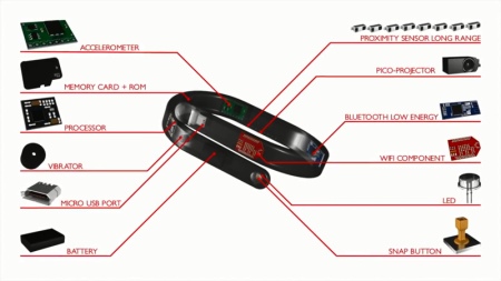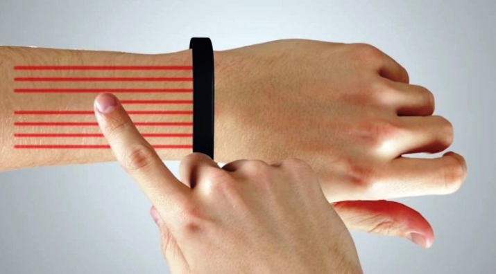 At first, French developers proposed a simple shake to activate the device. But in this case, the device is activated when it is not needed, which reduces the battery charge. Then it was decided that to turn on the projection it was necessary to scroll the bracelet around the wrist.