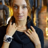 The design of bracelets from other kinds of materials is simpler - the product simply consists of two solid strips with a fastener, like a regular large belt. Such variants of models can be stitched, glued, or simply represent a single piece of any material.