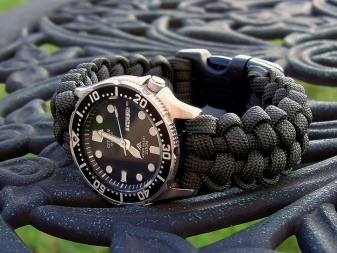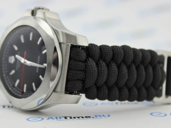 Another unusual model - a watch with a paracord bracelet, is an unmatched product. The strap is made of cord using a variety of weaving techniques. Weaving imitates the mechanism of an articulated bracelet, or model - a chain of small links.