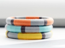 The easiest to manufacture option. For weaving baubles, threads of medium thickness and different colors are suitable. Usual stripes are used as decor, but due to the combination of many shades, the accessories look variegated. They look especially advantageous when the owner puts on several bracelets at the same time.