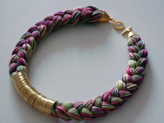 To create accessories you will need a minimum of materials: threads (floss or yarn) and scissors. Beads, beads, chains and metal pendants are used as decor. A feature of weaving baubles is that any details found at home are suitable for decorating them: buttons, rings, nuts. Due to the variability of the combination of elements, the accessories are unique for each craftswoman.