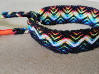 Another popular way to weave baubles. For it, durable threads of different colors are taken, and the work is based on four types of nodes that are combined in different ways to obtain patterns. Such bracelets are woven from left to right or from right to left. The nodes must be the same and tightly tightened, otherwise the surface will turn out uneven. In this way weave baubles of the Zigzag type.