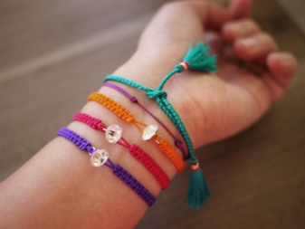 The uniqueness of bracelets made of threads lies in the fact that they are suitable for both girls and boys. Young people with informal clothing styles can wear one or more baubles, combining them with T-shirts, shorts or worn jeans. And girls will find jewelry to complement casual dresses, sundresses, cotton trousers, T-shirts and sweatshirts.