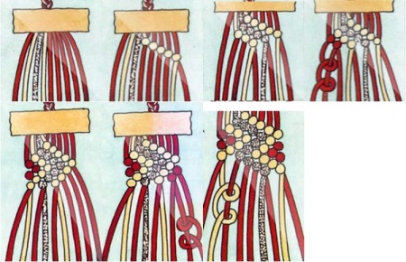 - Connect the two rightmost threads, then make two knots to the right.