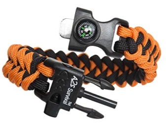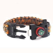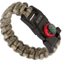 This bracelet has a wider range of tools that are built into the buckle: a compass, a scraper, a knife, an iron rod and, which is very useful, an emergency retinue. The paracord can withstand up to 250 kilograms, and the volume of the whistle is comparable to the rumble of thunder, the sounds of an orchestra, a setro car, a working chainsaw, so even getting lost in the forest will not be scary. Thanks to such functionality, the accessory will become an indispensable assistant for a long trip.