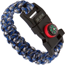 The most necessary tools of this bracelet - a flammable element whose serrated starter functions as a file and a compass - will be appreciated by lovers of outdoor recreation and short trips. With its help, a bonfire can be built, a trap set, and a location determined. Nothing more, suitable for beginner gonorrhea.
