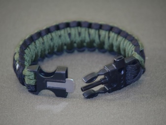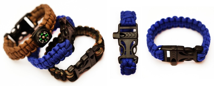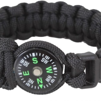 A more interesting option is a clasp, consisting of a button on one end of the bracelet, threaded into a loop at its other end. The clasp is not only a mount, but also a multifunctional part of the bracelet. It may contain, for example, an integrated whistle, a built-in compass, and even a hidden handcuff key. Recently, new models have appeared - without fastex, perhaps for some they will be the most convenient.