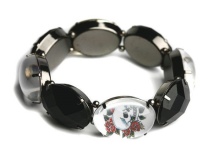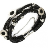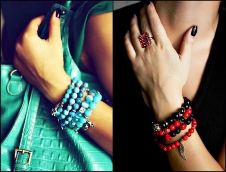 Against the background of steel, turquoise, onyx and garnet look great. Bracelets with such inserts can be purchased for a very reasonable price, which will not hit your wallet. They will not look cheap or boring, so today women of all ages are turning to them more and more often.
