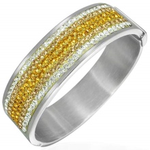 - Another popular item is the hinged bracelet. Such options are made of two components. They are combined with each other on the principle of a hinge-lock.