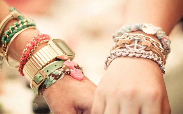 Many young ladies acquire thin bracelets and wear them in tandem with other accessories. For example, it may be a kit consisting of a steel bracelet, watch and woven leather jewelry. All products can be of various sizes, shapes, colors and shades. Similar options are a trend of recent seasons.