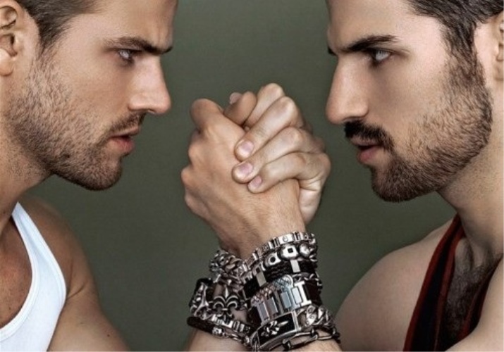 Another beautiful option is steel bracelets with rubber. They can be addressed by businessmen or just business people, and showmen or romantic people.