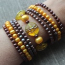 Wearing a group of single-tier bracelets (from 3 to 5) of a similar design, but a different color scheme is welcome. A combination of two polar different combinations is also possible: on one hand is a thin pearl string, on the other is a massive multi-tiered decoration.