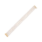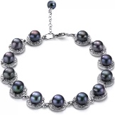 Similar bracelets are offered by The Pearl Outlet, but their clasp is made of yellow gold. In addition, this manufacturer offers not only accessories with pearls of milky white color, but also models with black stone. The cost of such jewelry starts at $ 135.