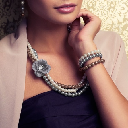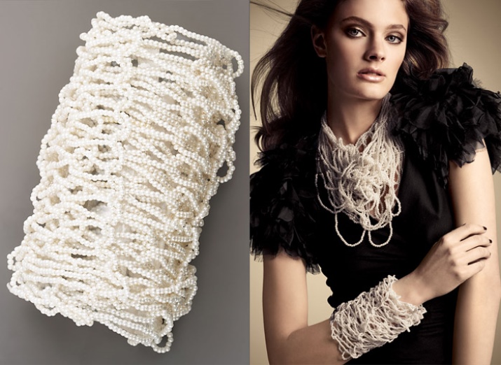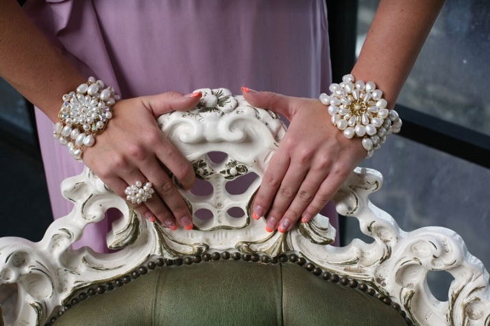 Today, the trend is to wear a lot of pearls at the same time: not one bracelet, but several. With bracelets they wear rings, necklaces, earrings. The only requirement: all accessories must be maintained in a single design. Bracelets, rings, necklaces, pendants should have the same number of tiers. All beads in jewelry are usually of the same color and size (an exception is if the different diameter of the beads is the author’s idea).