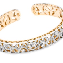 The most demanded are thin wire-frame bracelets-hoops, which, due to the apparent weightlessness, give the owner’s image lightness, grace and charm. Such jewelry is often worn in groups of 4-5 pieces.