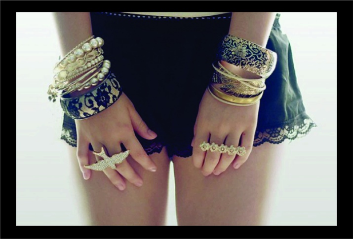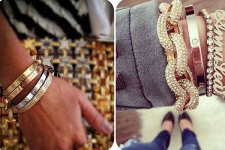 Modern designers believe that there should be a lot of beautiful bracelets on the hand, so they offer to wear them not one at a time, but several at a time. The most fashionable are massive and vibrant jewelry that attracts the attention of others.