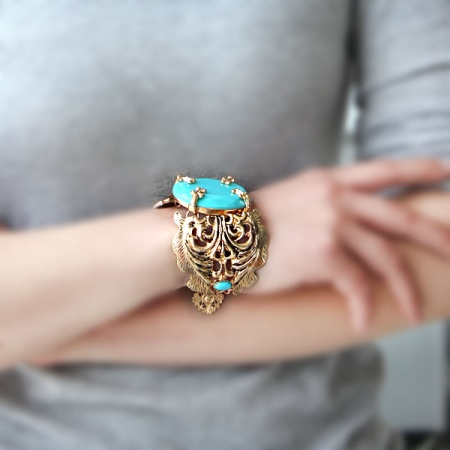 - The color of the stones should match the color of the eyes. Gray-eyed girls will suit stones of almost all shades, brown-eyed brunettes should give preference to bracelets with bright inserts that emphasize the expressiveness of the look. For owners of mysterious green eyes, the best choice would be a gold bracelet with green stones (agate, malachite) or with garnet. Blue-eyed beauties will help to add femininity and incomparable charm to jewelry with lapis lazuli and with black stones: agate or with rauchtopaz.