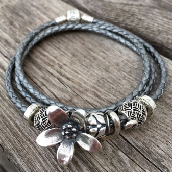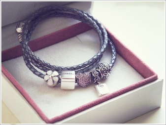 Pandora leather bracelets are very popular among typeset jewelry fans. The brand offers accessories in various sizes. The bracelet should be tried on before purchase. The length of the string should be a couple of centimeters greater than the diameter of the wrist. The jewelry should not be tightened, because it will be further complemented by beads. At the same time, it should not hang down casually, otherwise it will ruin the whole impression of the accessory.