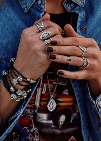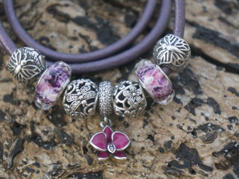 Regardless of the color of the base, in combination with the skin, any silver charms will look harmonious, because the accessory clasp is also made of silver.