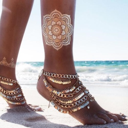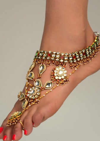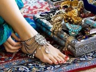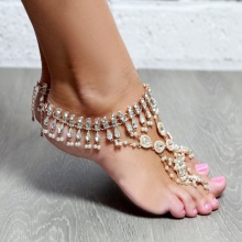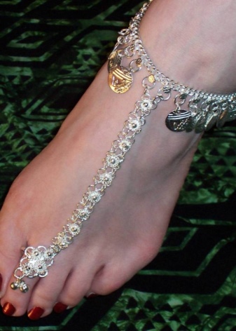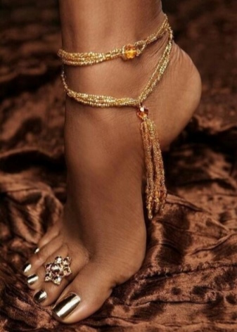 - Charming Barefoot chains are no less popular among ladies. They are especially relevant among women in India. Similar products are placed on the ankle and stretch along the female legs, ending with a ring on the finger. Many ladies turn to these beautiful bracelets during beach walks. No less impressive and harmonious they look in the conditions of a wedding celebration on some beautiful beach in hot countries.