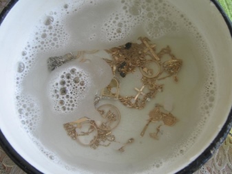 - Gold jewelry are recommended to be cleaned. To do this, it is enough to dilute a regular soap solution, dip a chain into it and wipe it with a dry cloth.