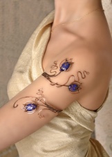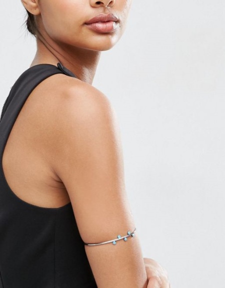 This is the most common design for a bracelet that attaches to the shoulder. It has survived to the modern world of fashion, going through the history of many cultures. Often, excavations in the tombs of Egypt still find jewelry that depicts a snake. Such accessories not only look interesting enough, but majestically and in a sense even “dangerous”, which so attracts many young girls in it.
