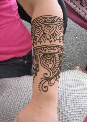 In the summer, many girls, in order not to bother with the daily selection of accessories for their onions, make mehendi on their skin - henna painting. The forearm is one of the popular areas for this. The pattern of the picture can be different and prepared by the master himself, or performed independently using a special solution based on henna. Such a tattoo can last on the skin for up to a month and, if necessary, it can be updated.