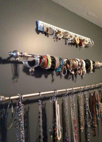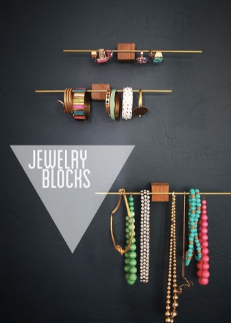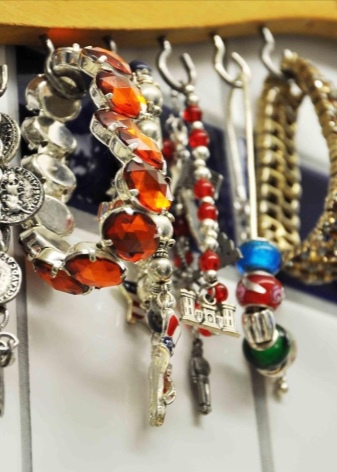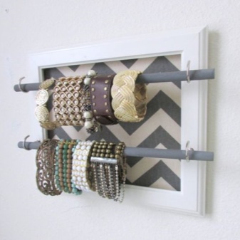 Bracelet holders are made in the form of a hand, but this option allows you to store only a small number of bracelets. For mass storage, there are racks with small hooks that allow you to store products in a suspended state.