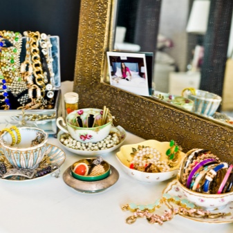 In addition, there are many organizers for jewelry and various little things. For example, stylish desk dressers, whose small drawers can be used to store bracelets.