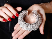 - This piece of jewelry should harmoniously fit into a stylish look. For an evening bow, it is better to choose an option with unusual weaving, and for work you can choose a model in minimalism.