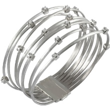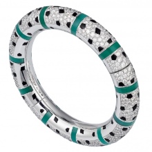 For a confident woman, the ideal option is a tough bracelet with diamonds in gold. It is characterized by versatility, since it can be worn both on the bare wrist and over the sleeve.