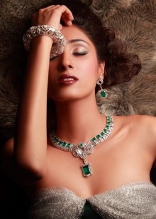 With diamonds and emeralds