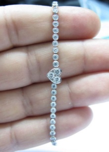 It is worth choosing jewelry with the same size of diamonds. Such a tennis bracelet will look amazing.