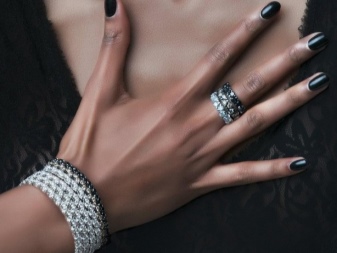 If a bracelet with black stones is worn in tandem with an evening black dress, then shoes or other accessories can be a bright accent. A set of bracelets, rings and earrings looks beautiful.