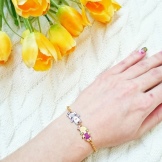 Mother's bracelet can be made of different materials.It can be precious metals (gold, silver) or modest options with different pendants. Gold jewelry is the most popular type of gift. These items are made of white, lemon and pink gold, more often encrusted with cubic zirconias and diamonds, Swarovski crystals, decorated with colored enamel in different shades. However, at the request of the customer, other precious stones can be added.