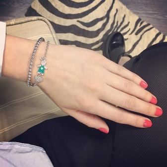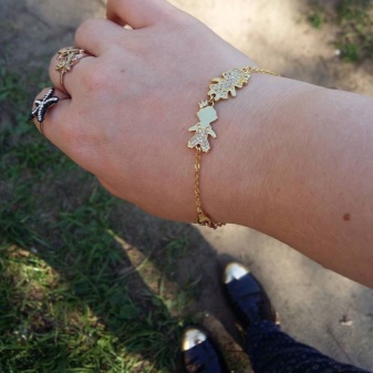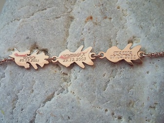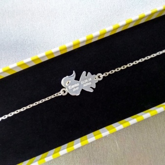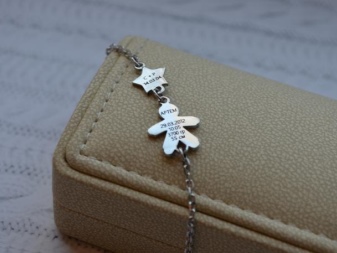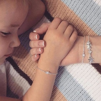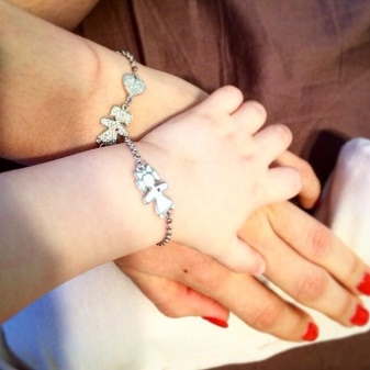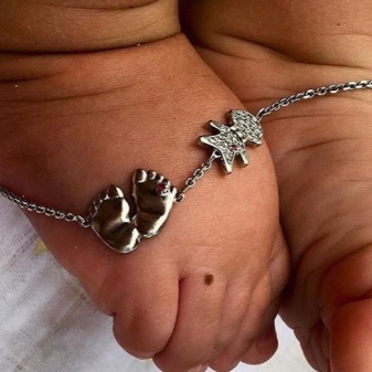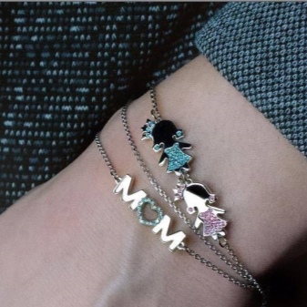 The bracelet may consist of a chain, children's figures, pendants decorated with precious minerals. You can assemble an accessory for different occasions.Engraved products are especially popular: warm words about love, the metric and the baby’s birthday will warm the mother’s heart for life.
