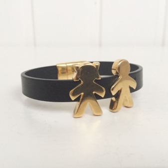 - Bracelet with kids can be of very different designs. You can buy a finished jewelry or order it according to an individual sketch, adding engraving. It all depends on the financial capabilities of the man, the skill and professionalism of the designer. If desired, on the reverse side of the baby's figures indicate the name, weight, height and date of birth of the baby.