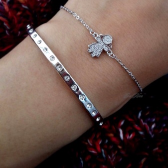 Making bracelets, trademarks decorate silver products with synthetic stones of artificial origin. In such bracelets, spinel and cubic zirconia, as well as synthetic corundum, are more common. In gold products, in addition to these stones, precious minerals (diamonds, rubies, sapphires) are attached.