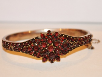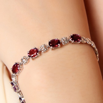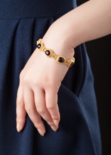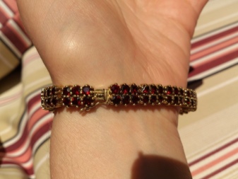 Gold bracelets with garnet are distinguished by their "expensive" appearance, which is difficult for modern fashionistas to resist. It is recommended to purchase jewelry made of test metal 585. It is the hardest and wear resistant.