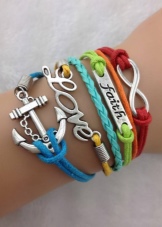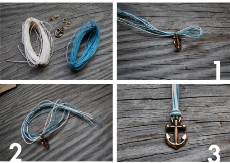If you could not find a suitable option in the store, make the perfect jewelry yourself. To do this, you will need a small pendant in the form of anchors, clasps and durable threads in different colors. Such components can be found in creative stores.