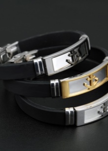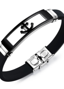 A rubber bracelet with a polished plate with a three-dimensional image of the anchor will look especially original and effective on a woman’s wrist.